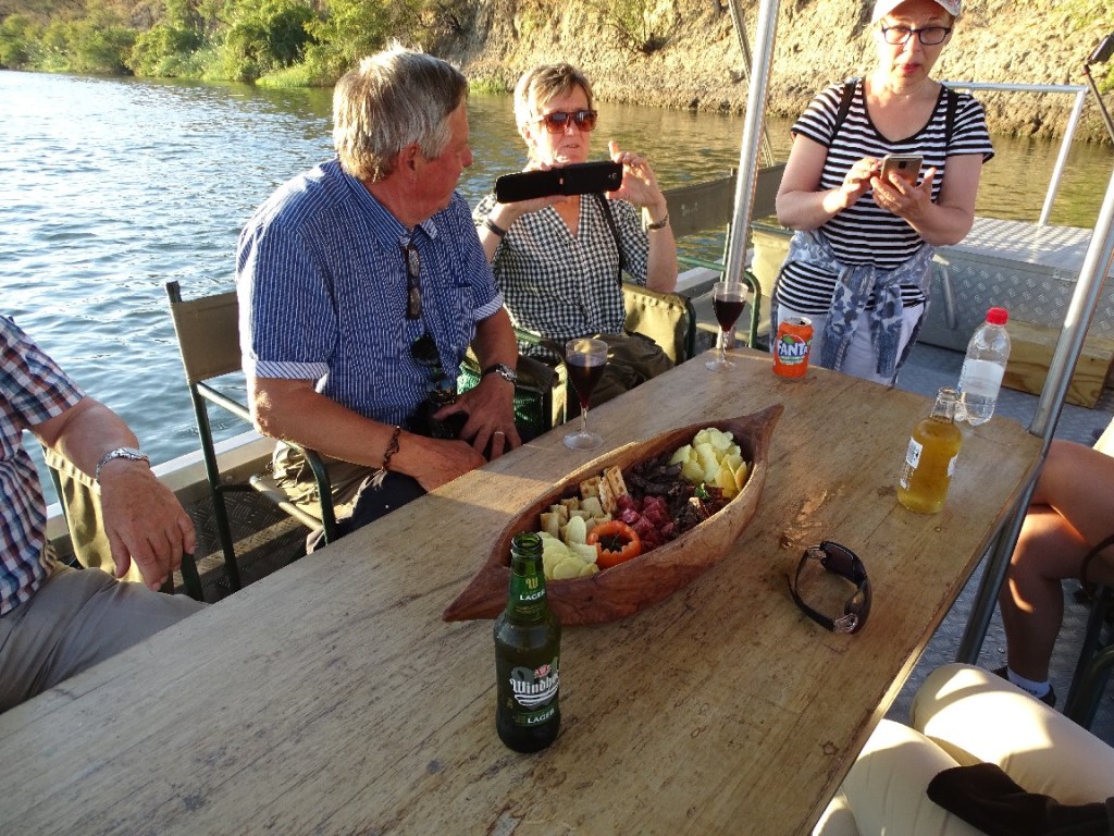 Jetzt ist die richtige Zeit für einen Sundowner und einen kleinen Snack. Ich mache mir ein Windhoek auf und reiche Annette ein Cider. So lässt sich das Leben geniessen.