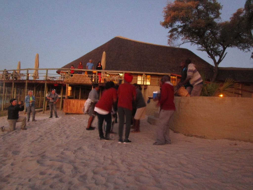 Anders als im Tarzan-Film verraten die Außenborder-Motoren unser Kommen. Und die wilden Tänzer stellen sich als die Mitarbeiter unserer Lodge heraus. Der Moment unserer Ankunft und dieser Empfang ist so umwerfend, dass sich bei einigen Damen in unserer Gruppe ein Tränchen in die Augenwinkel verirrt. „Mein Gott ist das schön!“ höre ich Jemanden sagen.
