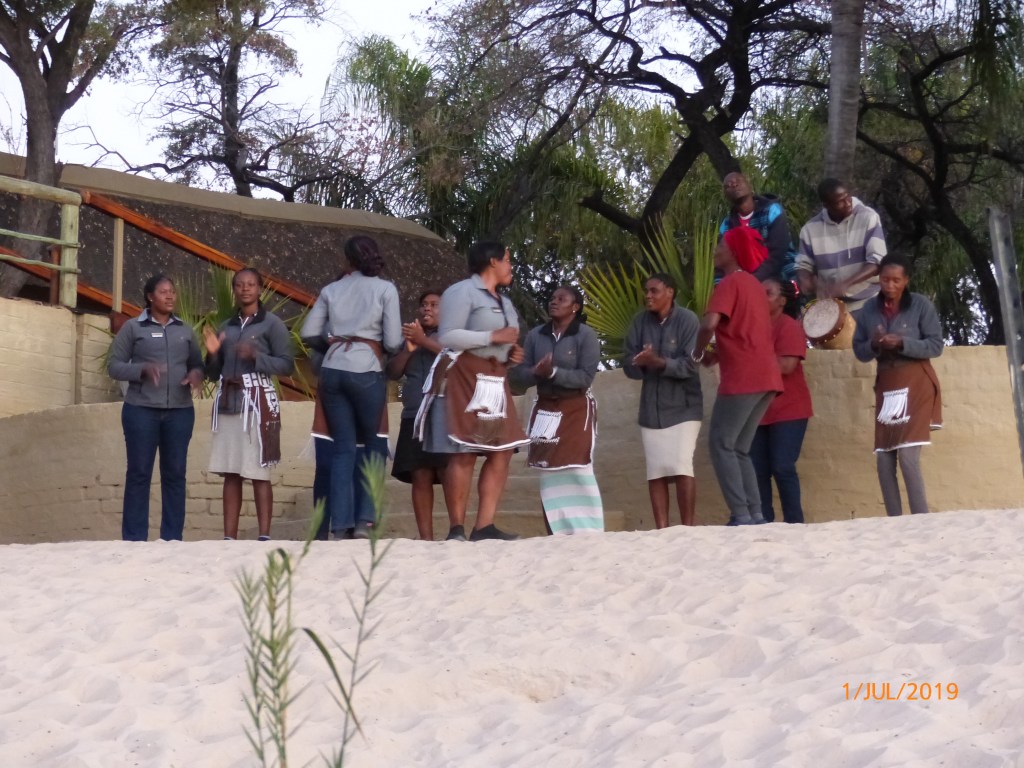 Auch im Markt trifft man auf Mitglieder der San, die in viel zu langen Kitteln, wie es scheint, Getränkeregale einräumen. Jedenfalls scheint sich das Verhältnis der Ureinwohner zu Cola-Flaschen gebessert zu haben (Die älteren unter uns wissen was ich meine!).