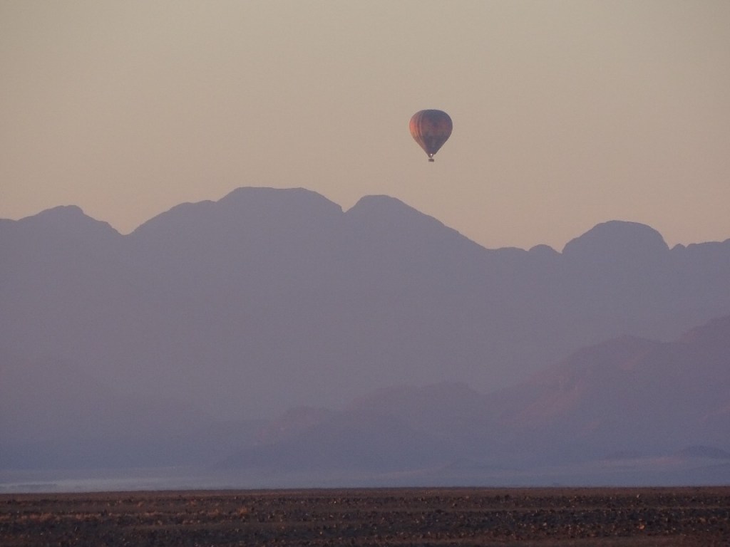 Am Horizont steigt ein Ballon in den Himmel. Wir machen einen Fotostopp auf einer Anhöhe. Die Landschaft ist atemberaubend. So ähnlich muss es in der Sahara aussehen, stelle ich mir vor.