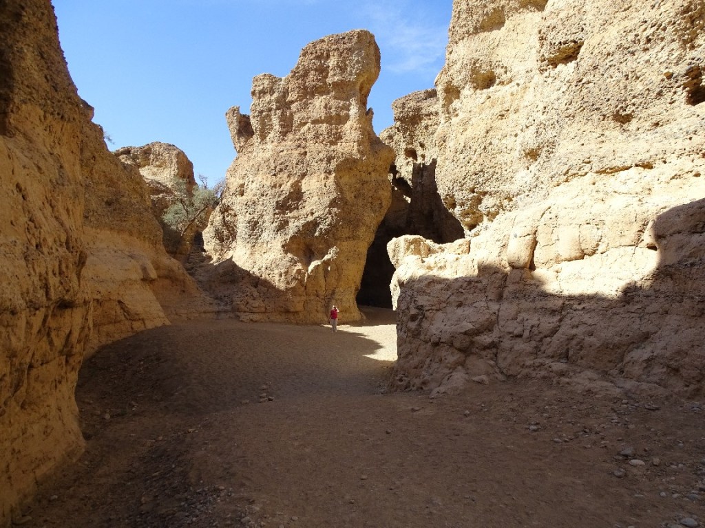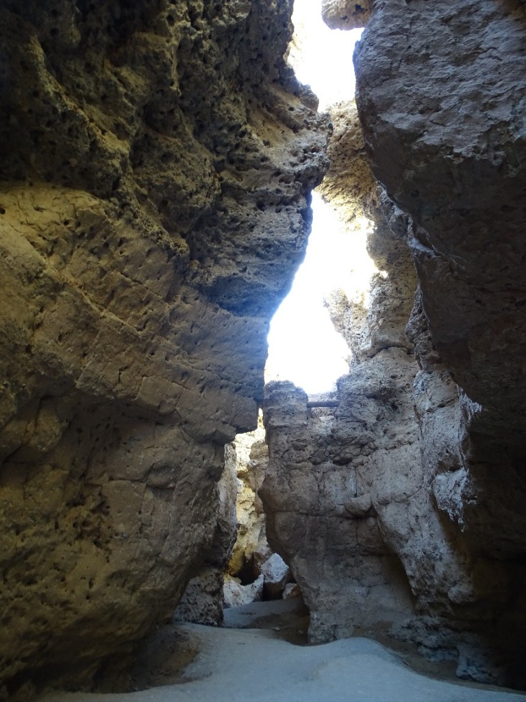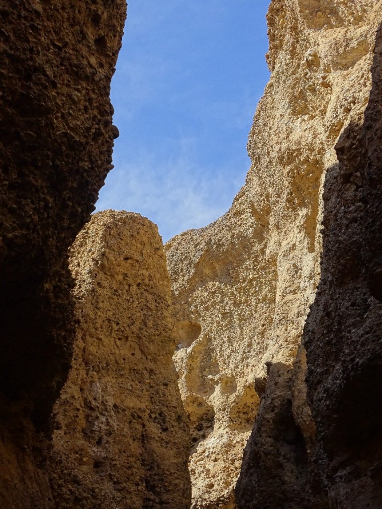 Es geht nun zurück Richtung Camp. Unterwegs machen wir Halt am Sesriem Canyon. Man merkt, dass es lange nicht geregnet hat. Der Canyon ist knochentrocken. In der Regenzeit, wenn es denn mal eine gibt, wälzt sich hier der Tsauchab River durch. Wir spazieren durch die felsigen Schluchten und entdecken am Ende eines Seitenarms eine Pfütze. Das ist alles was von dem Fluss übrig ist.